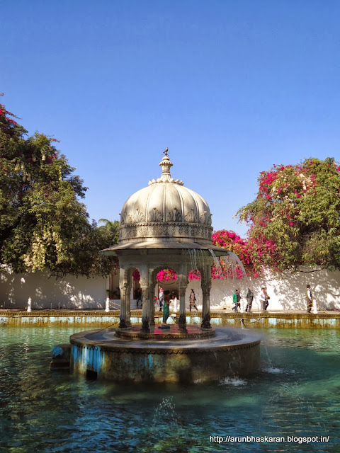 പക്ഷേ എല്ലാ ഭംഗികളും എല്ലാവര്ക്കും ആസ്വദിക്കാൻ കഴിയില്ലല്ലൊ. ദൂരെക്കാണുന്ന മനോഹരമായ ലേക് പാലസ് ഇന്നൊരു ആഡംബര ഹോട്ടലാണ്. തടാകത്തിന്റെ നടുവിൽ വെണ്ണക്കല്ലുകൊണ്ട് ഒരുക്കിയ അത്തരം ഭംഗികള് ദൂരെനിന്ന് കണ്ട് കൊതി തീര്ക്കുക മാത്രമേ ഞങ്ങൾക്ക് ചെയ്യാനുണ്ടായിരുന്നുള്ളൂ. അന്തപ്പുരത്തിലെ രാജകുമാരിമാർക്കും വെപ്പാട്ടിമാർക്കും വേണ്ടി ഭരണാധികാരികൾ മെനഞ്ഞെടുത്ത ഒരു ഉദ്യാനത്തിലേയ്ക്ക് പക്ഷേ ഞങ്ങൾ പിന്നീട് ചെന്നു. കൊട്ടാരത്തിൽ നിന്നുമകലെയുള്ള സഹേലിയോം കി ബാരി എന്ന കന്യകമാരുടെ ഉദ്യാനം പച്ചപ്പ് നിറഞ്ഞതും മനോഹരവുമാണ്.അവിടത്തെ പുറം ചുവരുകളിൽ നിറപ്പകിട്ടുള്ള ചിത്രങ്ങൾ കാണാം. കൈ കൊട്ടുന്നതിനനുസരിച്ച് ജലധാര നിയന്ത്രിച്ച് അവിടത്തെ കാവൽക്കാർ വിദേശയാത്രികരെ അമ്പരപ്പിക്കുന്നത് കണ്ടു.